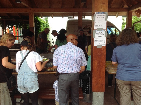 Dank des schönen Wetters war das Schulfest gut besucht. Der Förderverein organisierte, wie bei den bisherigen Schulfesten auch, das Catering mit diversen Kaltgetränken. Außerdem gab es Brat- und Rindwürstchen sowie Puten- und Schweinesteaks vom Grill. Dank einer Vielzahl von leckeren von den Eltern gespendeten Salaten und anderer Köstlichkeiten gab es auch ein stattliches kaltes Buffet.