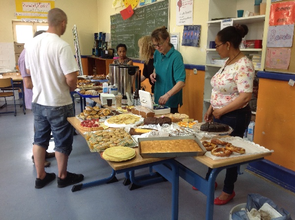 Viele Kuchen wurden gebacken und vor Ort unter Mithilfe von Müttern verkauft. Dazu gab es Kaffee und andere Getränke.
