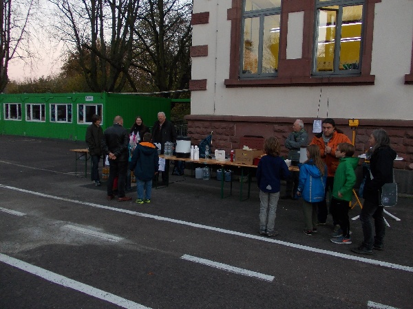 Für die Kinder gab es traditionell wieder Brezeln und Orangensaft. Dieser wird den Kindern vom Förderverein kostenlos zur Verfügung gestellt. Für die Eltern hatten wir auch dieses Jahr wieder heisse Rindwurste, Brötchen sowie Glühwein angeboten. Bei dieser Veranstaltung hatten wir zum ersten mal das Problem, dass wir gegen 19:00 Uhr alles verkauft hatten und auch der Orangensaft und die Brezlen alle verbraucht waren.