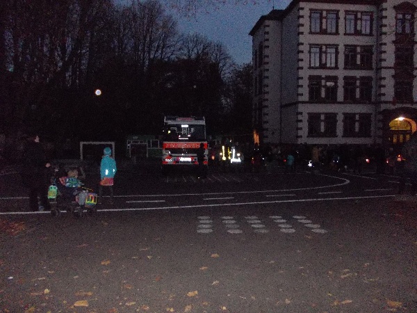 Im Anschluss wurde mit Unterstützung der freiwilligen Feuerwehr auf dem Schulhof ein St. Martinsfeuer entzündet. Bedauerlicherweise brannt das Feuer nicht wie von uns geplannt da das Holz zunass war. Aber bis 2016 sollte der restbestand des Holz ausreichnet getrocknet sein.
