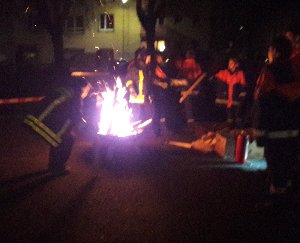 Im Anschluss wurde mit Unterstützung der freiwilligen Feuerwehr auf dem Schulhof ein St. Martinsfeuer entzündet. Dieses Jahr konnten wir mit dem richtigen Holz auch ein schönes St. Martins Feuer entzünden.